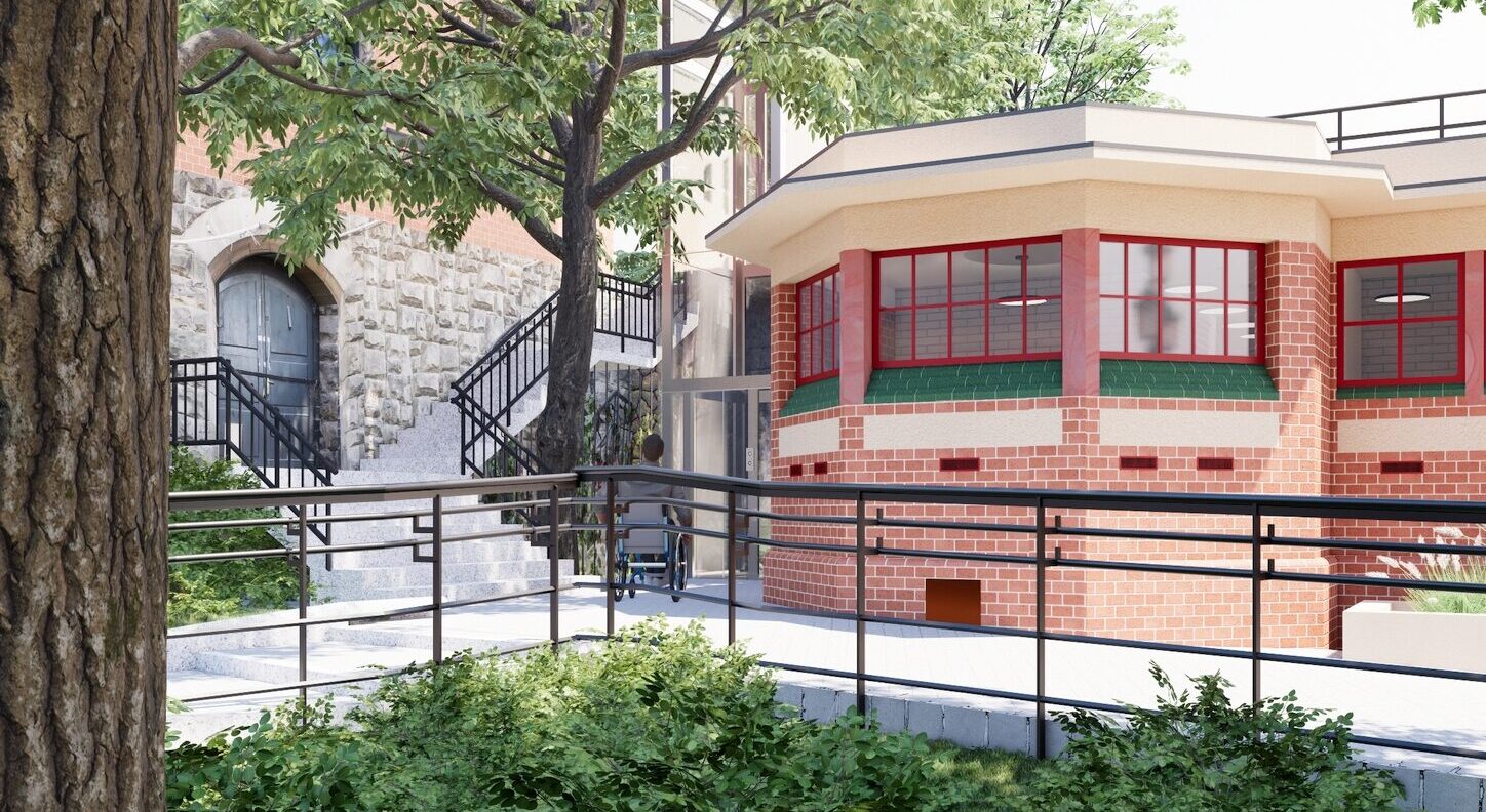Sanitariaty ogólnodostępne, w tym toaleta przystosowana dla osób z niepełnosprawnościami, powstaną w odnowionym budynku dawnego szaletu miejskiego, który zostanie zrewitalizowany z zachowaniem zaleceń konserwatorskich.