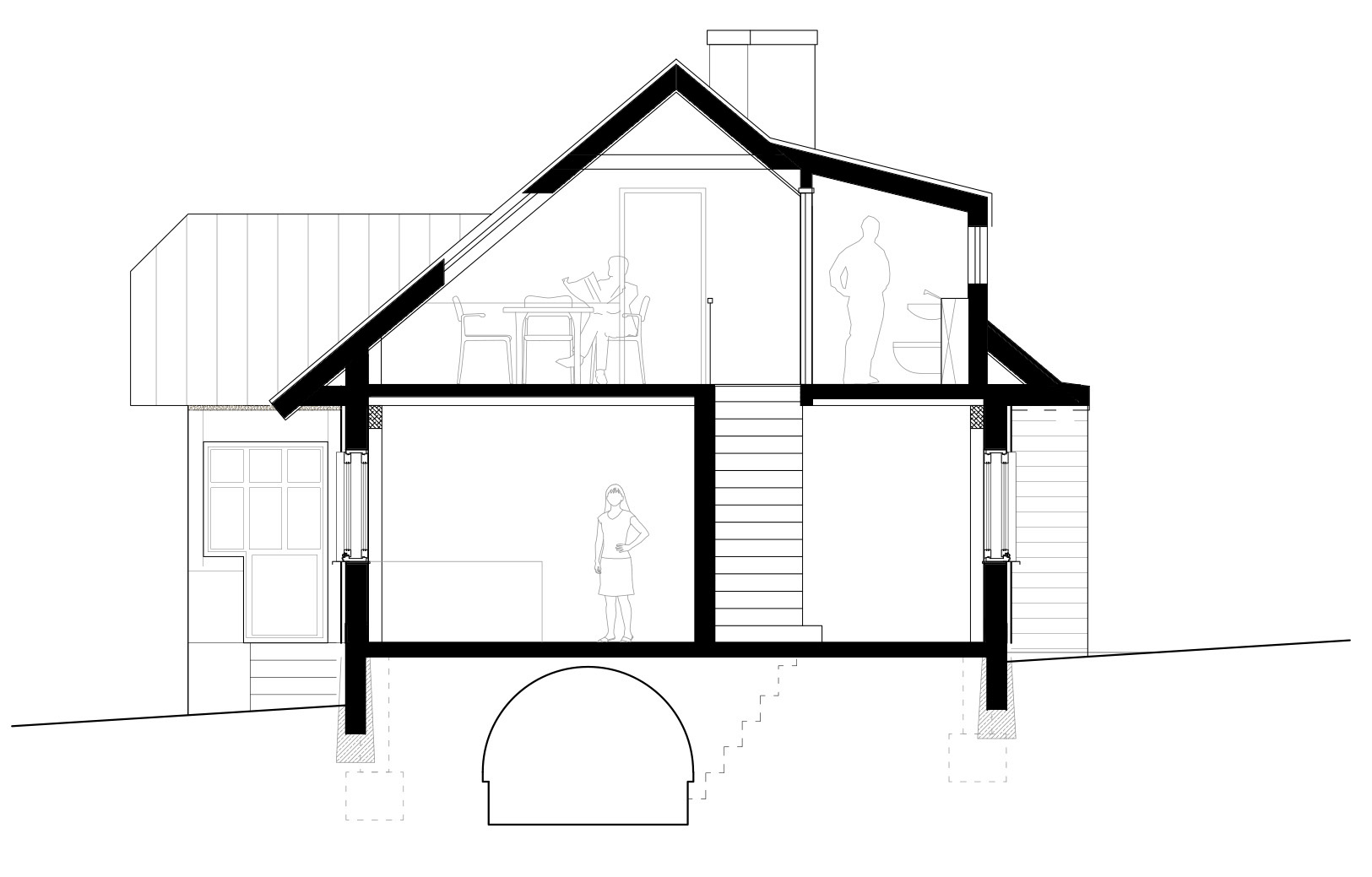 W budynku zaprojektowano również adaptacje murowanej piwniczki (powierzchni 6m2) na biblioteczkę lub piwniczkę na wino. Piwniczka dostępna jest schodkami kamiennymi z korytarza wspólnego na parterze, w którym również znajdą się drewniane schody prowadzące na piętro.