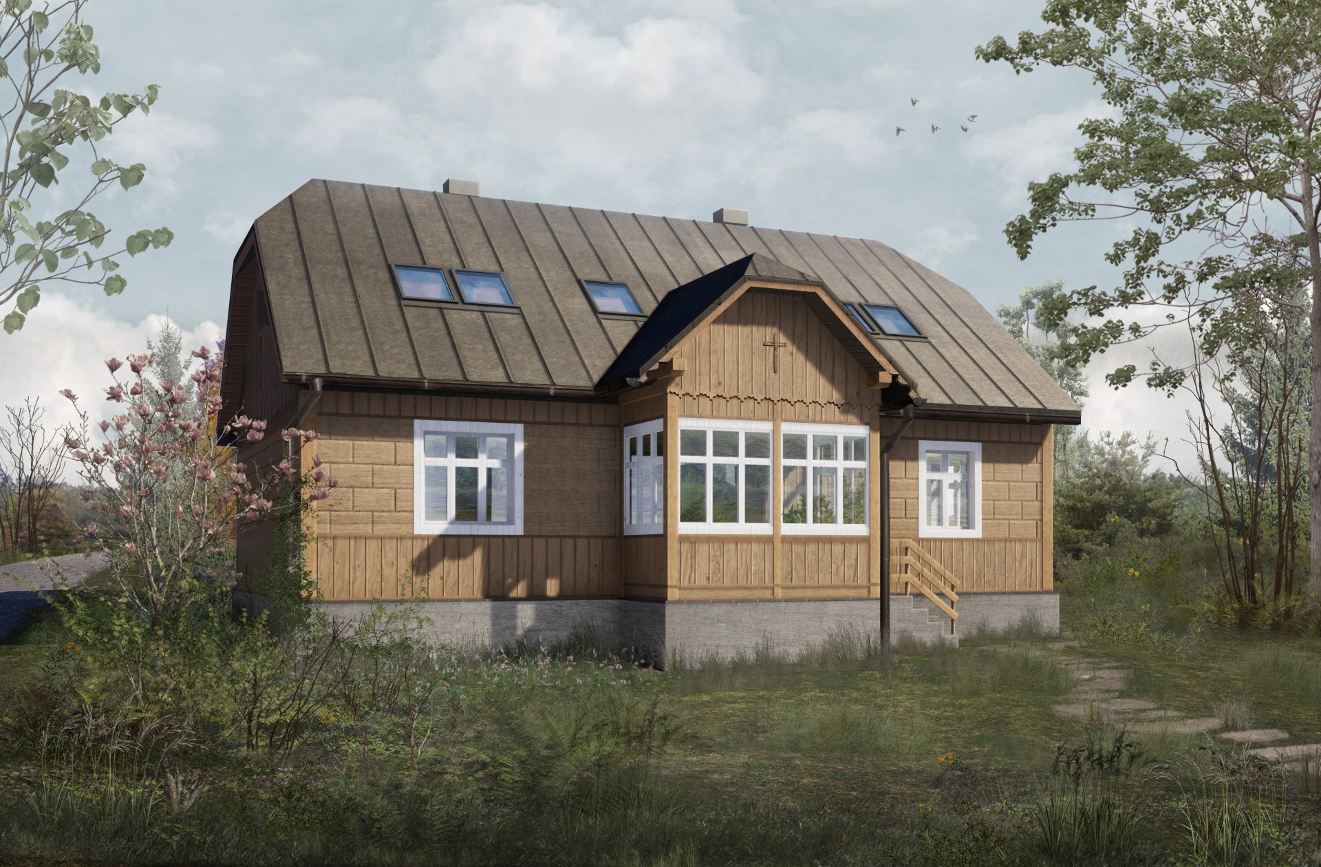 Świadomy inwestor pragnie zachować unikalny klimat wiejskiego domu z werandą i przywrócić mu walory użytkowe, a także zwiększyć jego powierzchnie mieszkalną i funkcjonalność poprzez adaptacje poddasza.