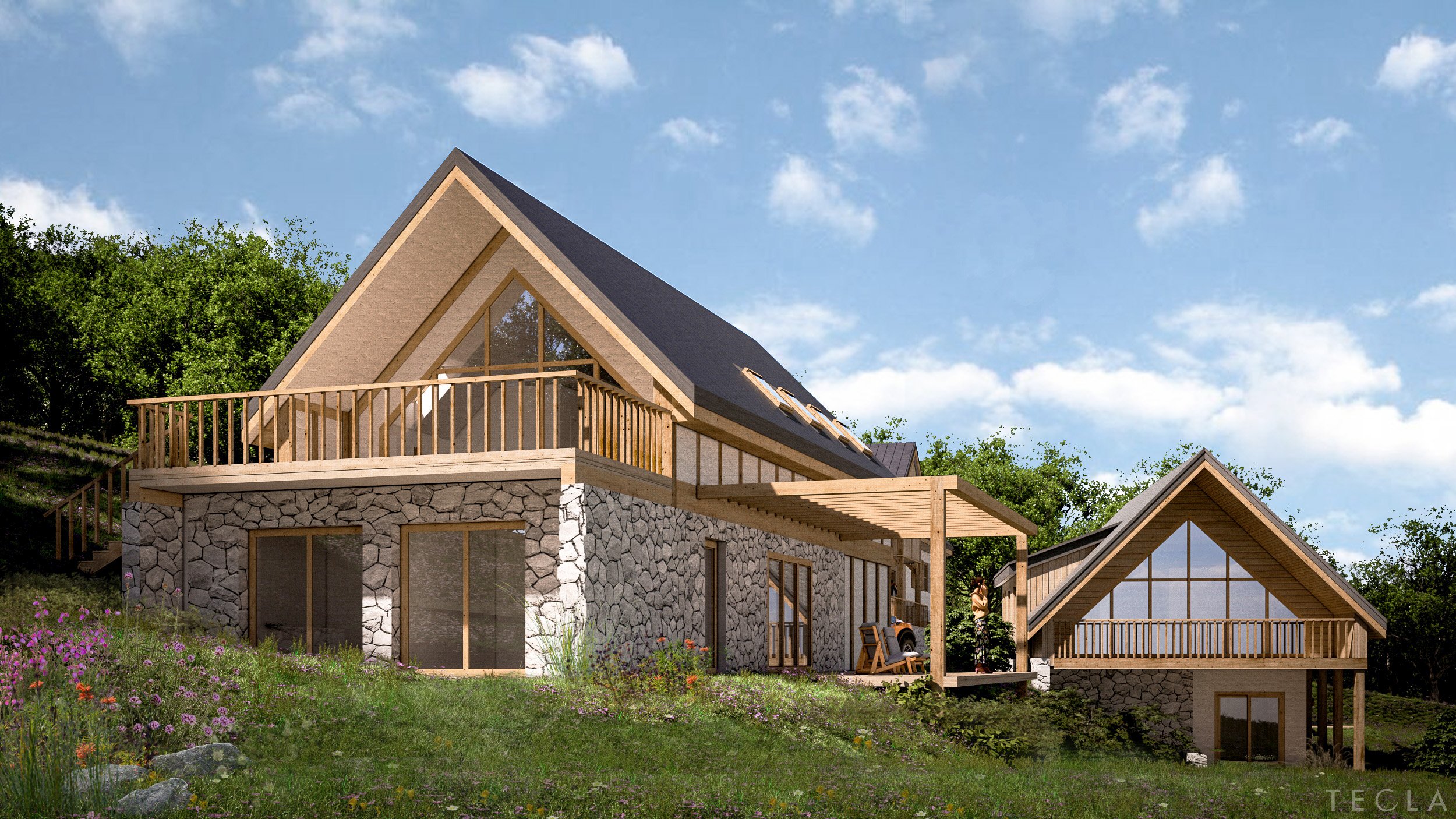 Projekt 4 domów jednorodzinnych dwulokalowych – 8 apartamentów – z pięknym widokiem na panoramę gór w Szklarskiej Porębie. Inwestycja łączy nowoczesne i ekologiczne rozwiązania z elementami nawiązującymi do tradycji regionu. Styl architektury oraz ułożenie domów nawiązuje bezpośrednio do układów występujących lokalnie, oddając jednocześnie klimat tradycyjnej górskiej miejscowości uzdrowiskowej. Ułożenie domów na działce umożliwia maksymalne wykorzystanie światła dziennego w pokojach wypoczynkowych jak i zachowanie prywatności i podziwianie pasma Karkonoszy przez duże przeszklenia.