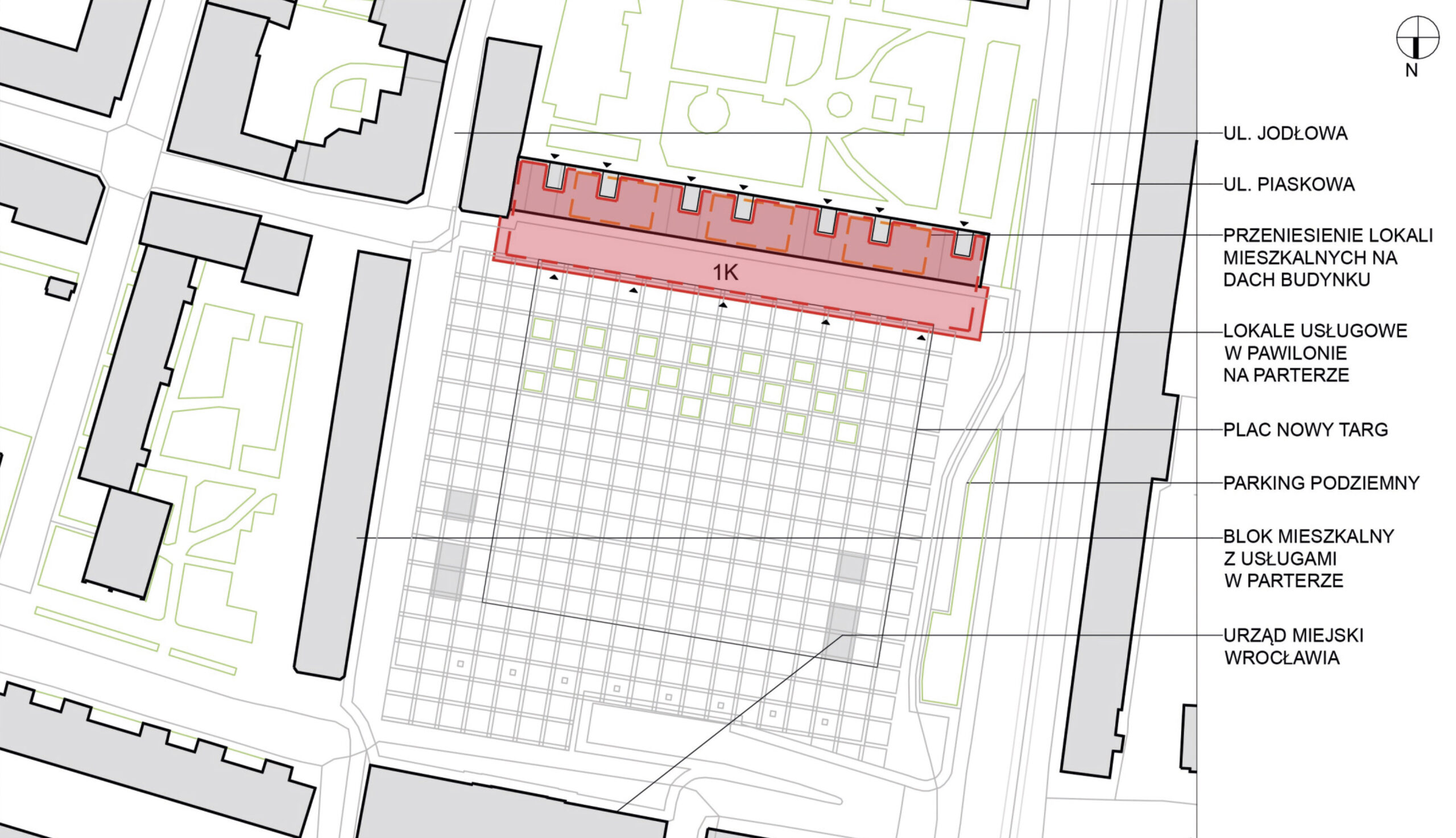 Projekt koncepcyjny ożywienia przestrzeni publicznej placu Nowy Targ (Neumarkt) we Wrocławiu poprzez wprowadzenie usług w parterach północnej pierzei. Planuje się skoordynowanie projektowanego zazielenienia placu z rozszerzeniem programu funkcjonalnego o usługi komercyjne w parterach, aby rewitalizacja mogłaby być pełniejsza i skuteczniejsza.