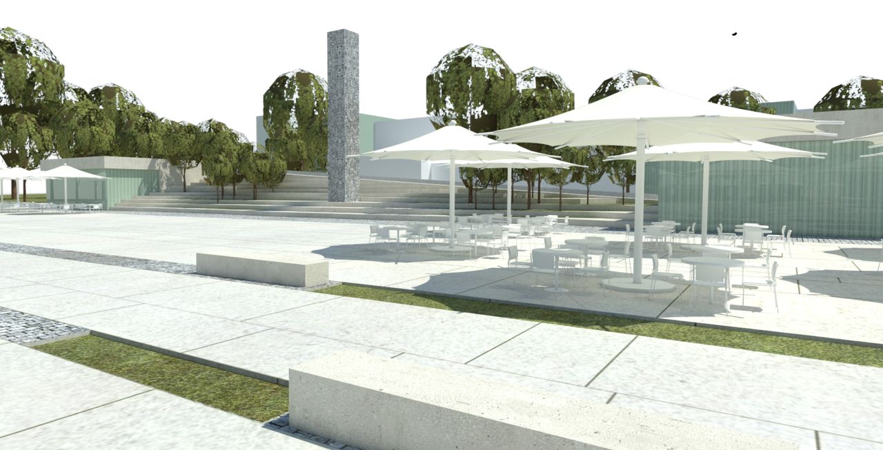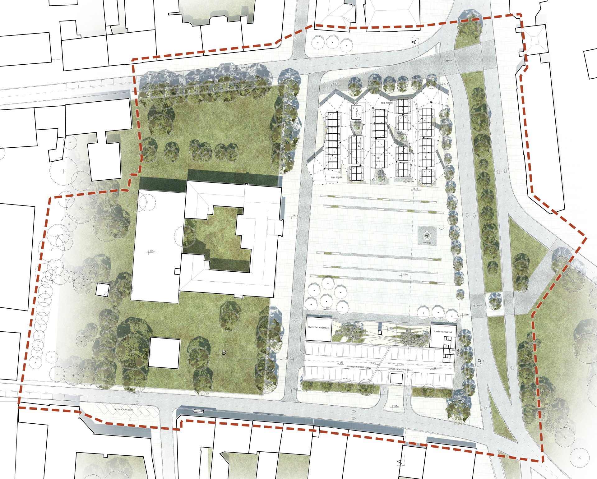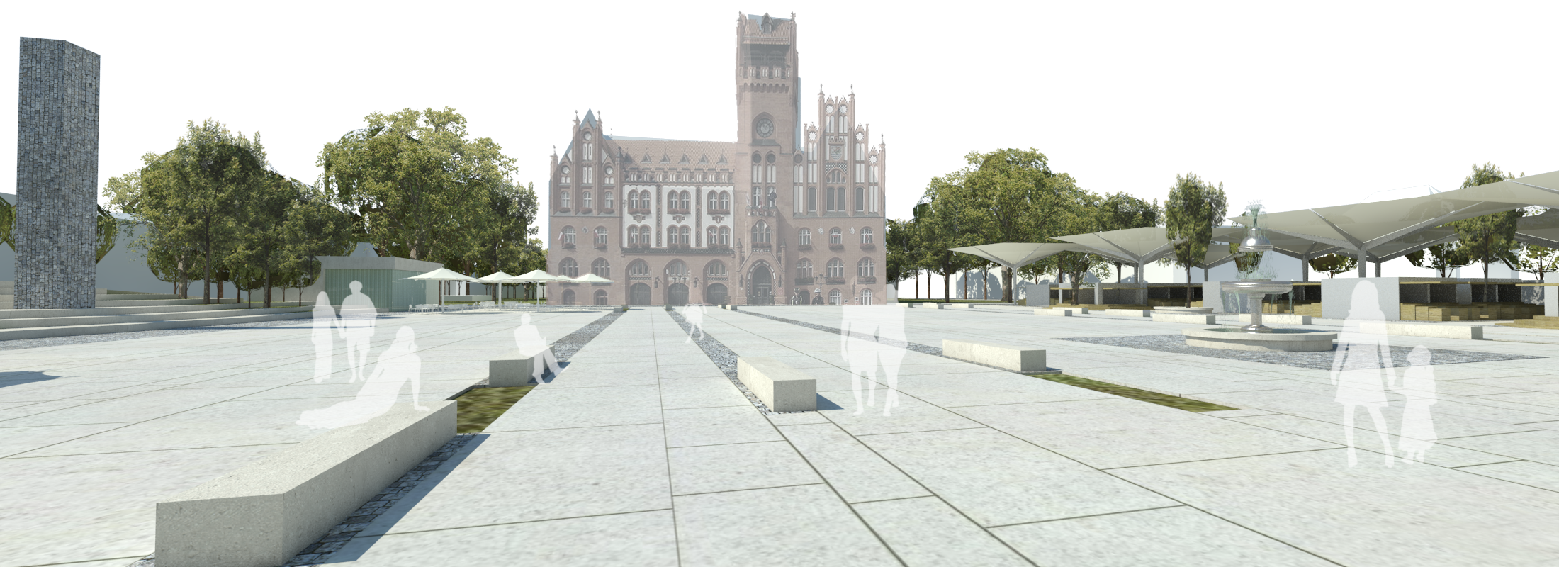 Urządzenie placu opiera się na skróceniu dystansu pomiędzy jego północną a południową pierzeją – nie zabudową kubaturową a urządzeniami na placu w odpowiedniej skali i kompozycji; oraz na wykreowaniu estetycznej, przyjaznej i funkcjonalnej przestrzeni publicznej.